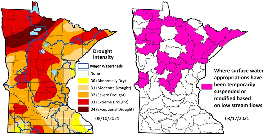 ST. PAUL, MN (KDAL) – The entire state of Minnesota entered a drought warning phase in mid-July and over the last month conditions have worsened especially in the north.