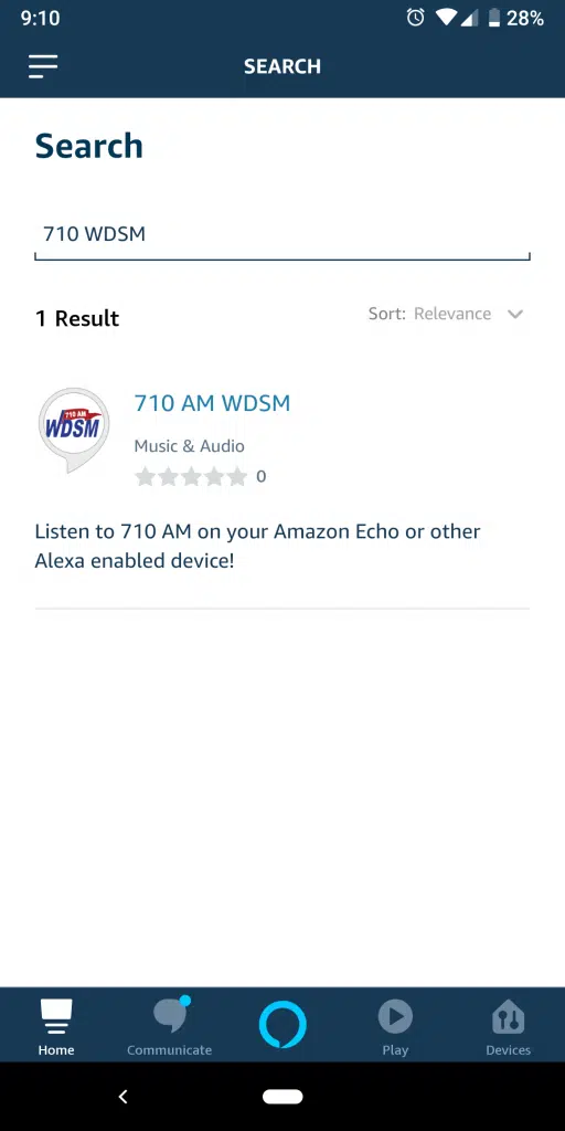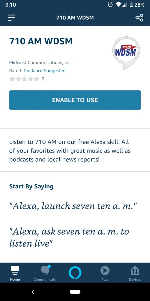 - In the Amazon Alexa App, go to “Browse Skills” and search 710 WDSM